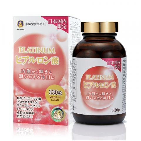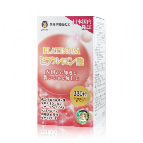 藥師堂PLATINUM白金低分子玻尿酸,是一種天然多醣類,含有鮭魚蛋白聚醣、膠原蛋白、玻尿酸三效合一,還添加了番茄紅素,都是美容聖品。其中鮭魚蛋白聚醣具有類EGF活性,可產生膠原蛋白及玻尿酸,加速皮膚細胞再生。玻尿酸人體內本來就有,存在於眼球水晶體、關節潤滑液中、人體肌膚真皮層內保濕之重要成分。